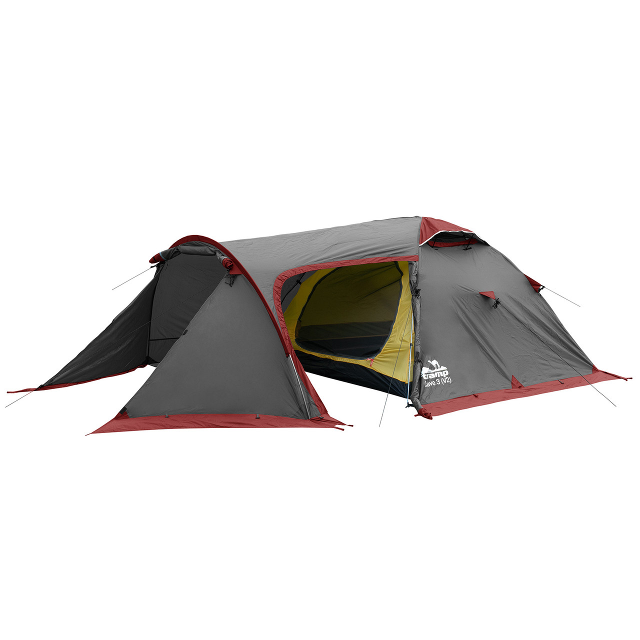 Намет Tramp Cave 3 (V2) - тримісний намет експедиційного класу з 3-ма входами – 2 з тамбура, один зі зворотної сторони, з великим тамбуром для зберігання спорядження чи організації кухні.